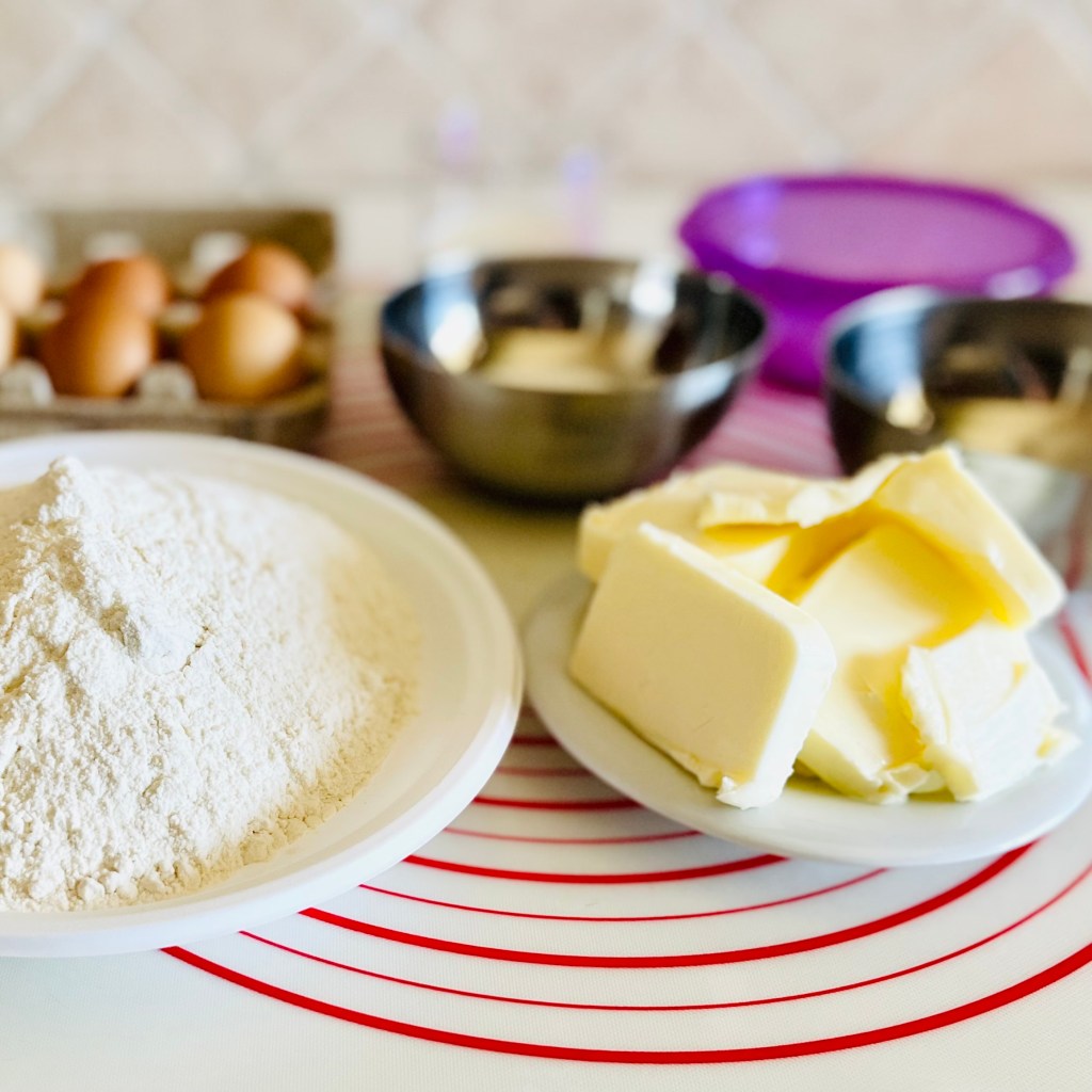 Prima di cominciare ad impastare gli ingredienti, questi devono essere tutti a temperatura ambiente, soprattutto il burro e le uova. Questo può richiedere un tempo extra, fino a 60 minuti.