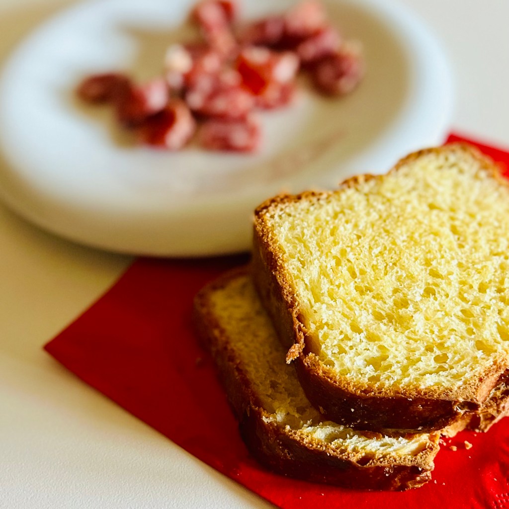 Di seguito sono riportate le dosi per realizzare due pan-brioche di circa 22 cm di lunghezza.