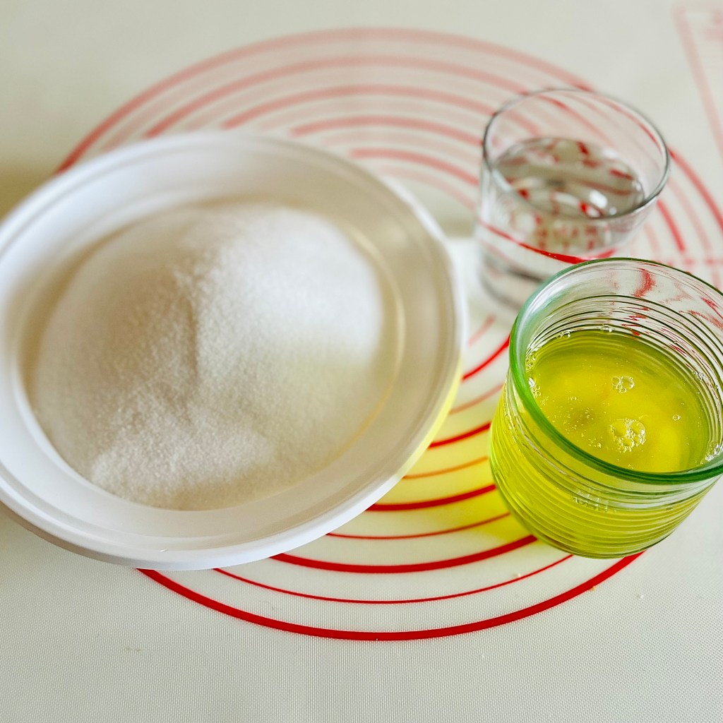 Per prima cosa mettete gli albumi nel cestello della planetaria, quindi versate zucchero e acqua nel pentolino, mescolando per rendere la massa abbastanza omogenea. Mettete il pentolino su un fornello accesso e cominciate a scaldare lo sciroppo monitorando la temperatura con il termometro.