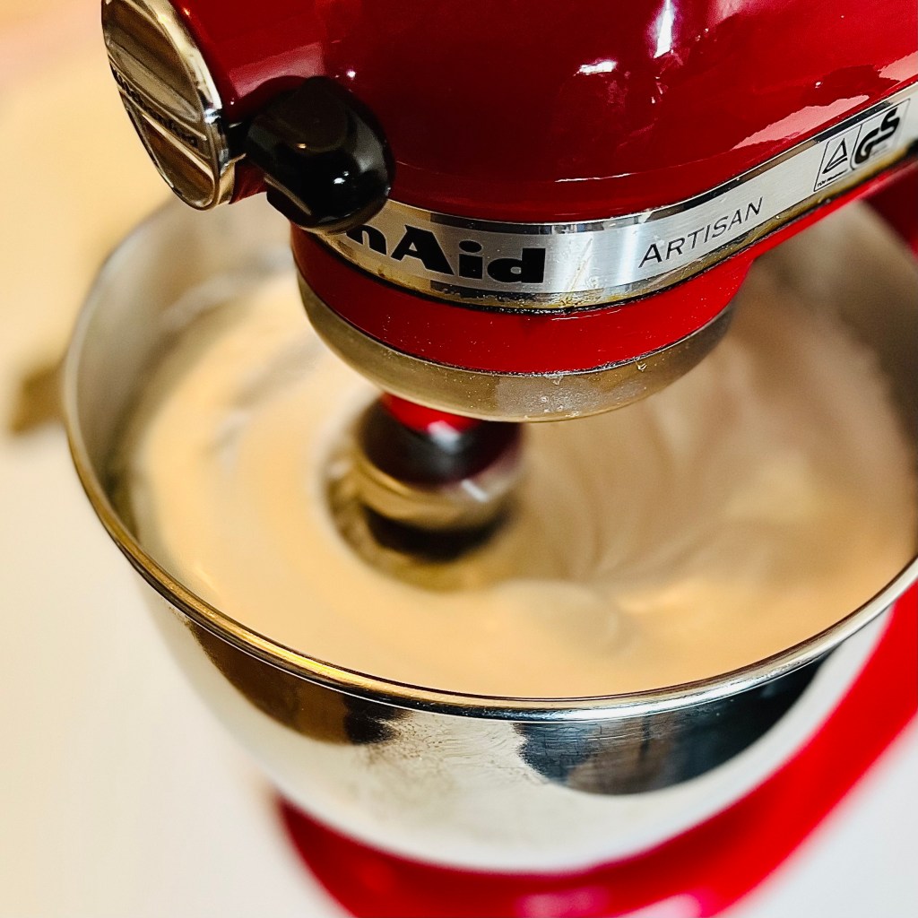 Lo sciroppo andrà cotto fino al raggiungimento della temperatura di 121 °C. Quando il termometro avrà raggiunto il valore di 115 °C, iniziate a montare gli albumi nella planetaria, alla velocità massima. Quando lo sciroppo raggiunge i 121 °C, interrompete la cottura e togliete il pentolino dal fuoco. Aspettate che si riduca un po’ il numero di bollicine nello sciroppo, e versatelo a filo sulla montata di albumi, continuando a sbattere alla velocità massima.
