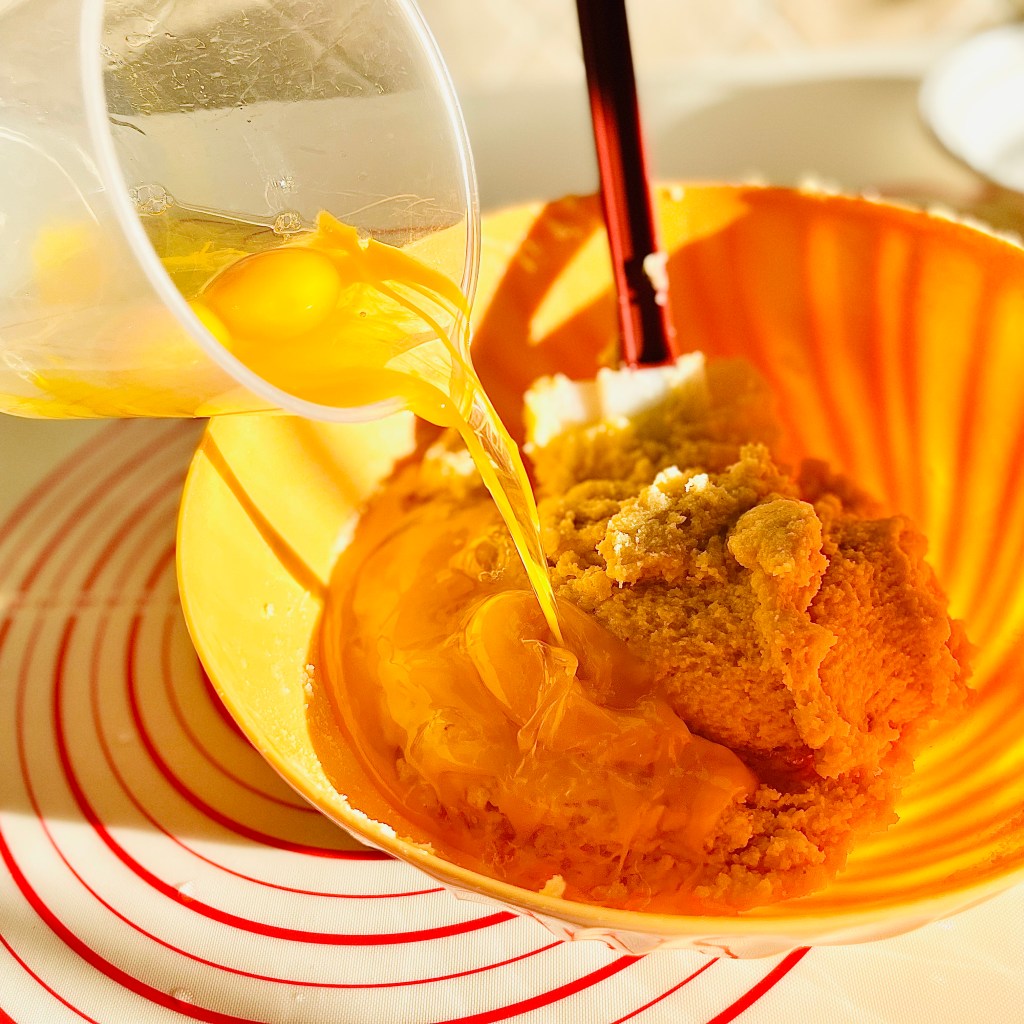 In sintesi si tratta di mescolare in una ciotola tutti e cinque gli ingredienti della ricetta, procedendo in questo ordine: si parte dal burro e dallo zucchero, poi si aggiunge la farine di mandorle, quindi le uova e infine la farina 00.