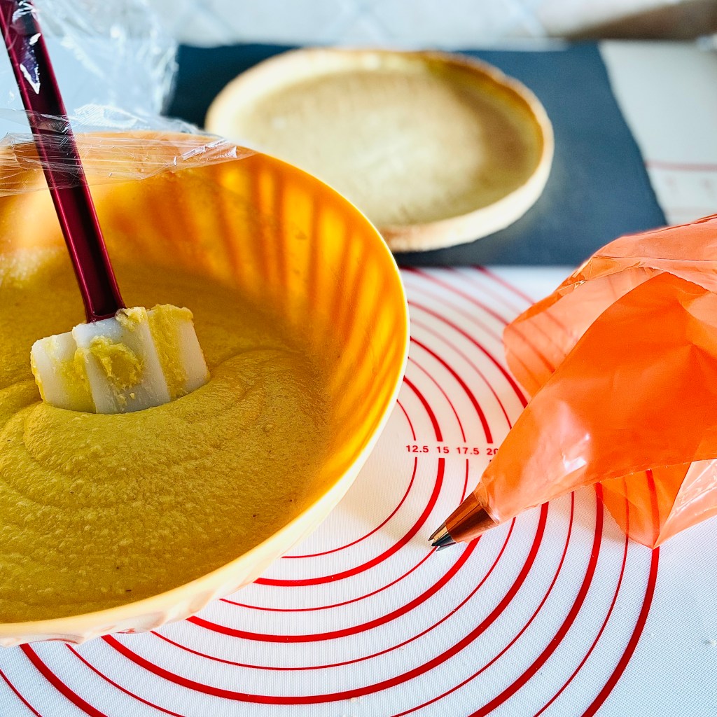 - il secondo giorno è dedicato alla cottura della frolla, alla preparazione del cremoso alle mandorle e della meringa italiana, e all’assemblaggio finale della crostata