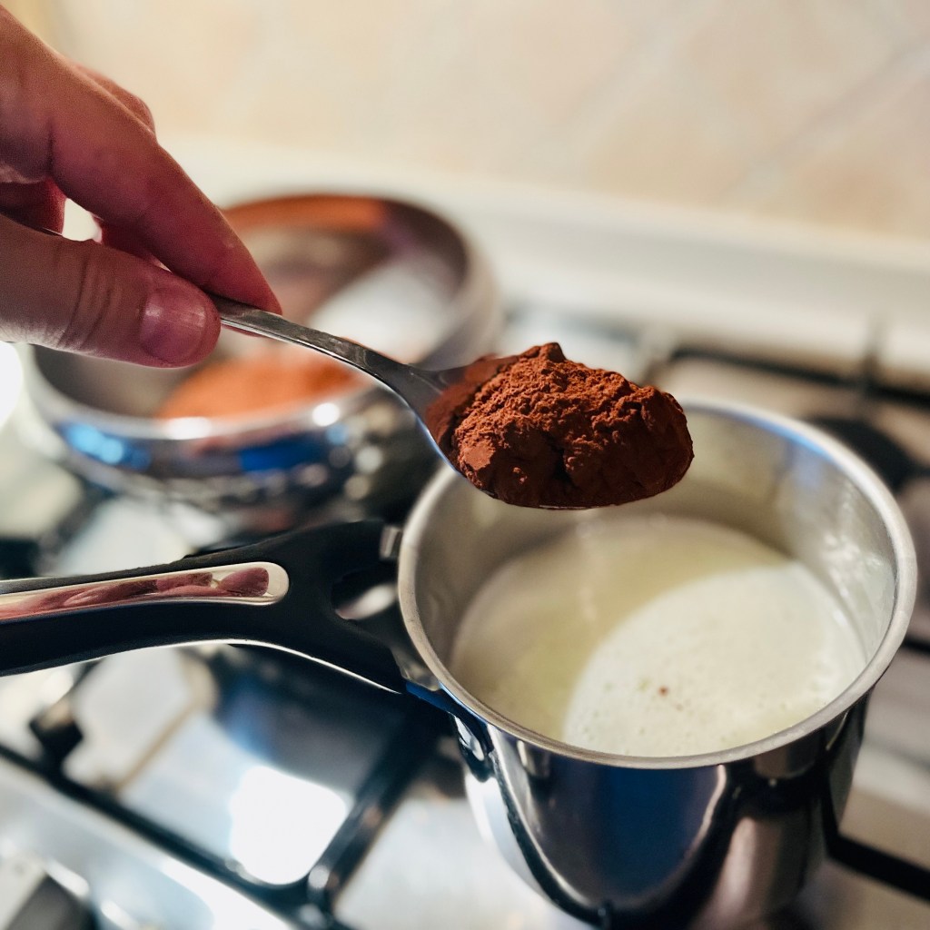 Per la preparazione della glassa a specchio si parte mettento a bollire in un pentolino l’acqua, la panna e lo zucchero, mescolando regolarmente. Una volta raggiunto il punto di ebollizione, si spegne il fuoco e si aggiunge la gelatina pre-idratata e strizzata bene, e a seguire il cacao amaro. Ogni volta che si aggiunge un ingrediente, miscelare bene con una frusta e rendere il tutto il più possibile uniforme.