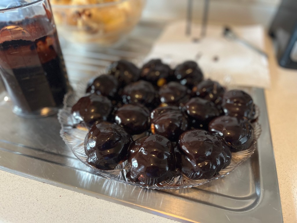 Terminata la cottura, i bignè vengono lasciati a raffreddare a temperatura ambiente. Nel frattempo ci si può dedicare alla preparazione della glassa e al completamento della Crema Diplomatica.