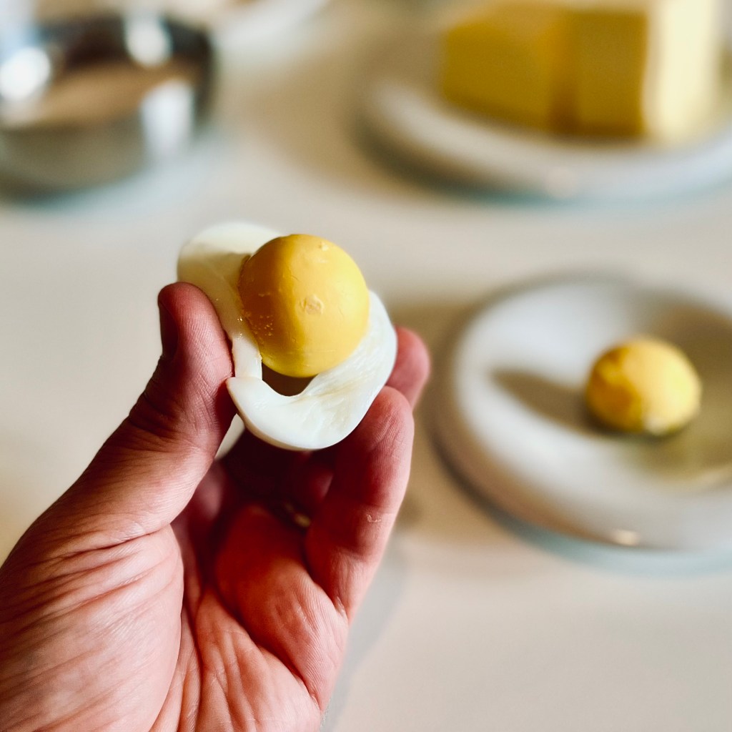 - la preparazione della frolla ovis mollis, che richiede circa un’ora visto il tempo necessario per cucinare le uova (e si esclude il tempo necessario a portare il burro alla temperatura ambiente)