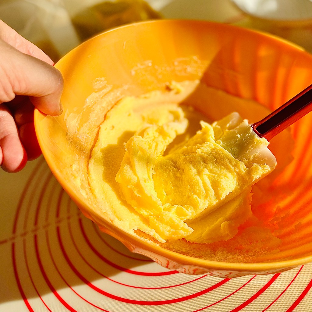 In sintesi si tratta di mescolare in una ciotola tutti e cinque gli ingredienti della ricetta, procedendo in questo ordine: si parte dal burro e dallo zucchero, poi si aggiunge la farina di mandorle, quindi le uova e infine la farina 00. Per piccole quantità si può mescolare il tutto con una spatola da cucina; in alternativa si può ricorrere al mixer, usando l’estensione a foglia.