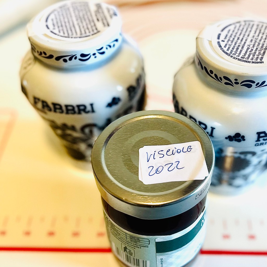 Per completare il dolce occorrono amarene sciroppate e marmellata di visciole.